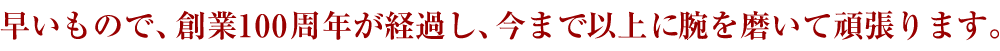 早いもので創業100年が経過し、ますます腕に磨きをかけて